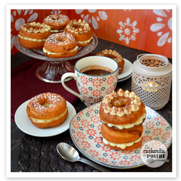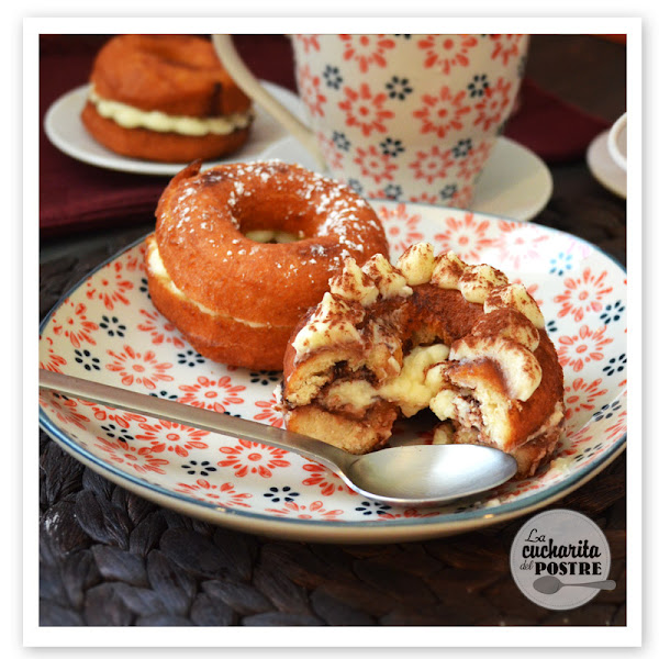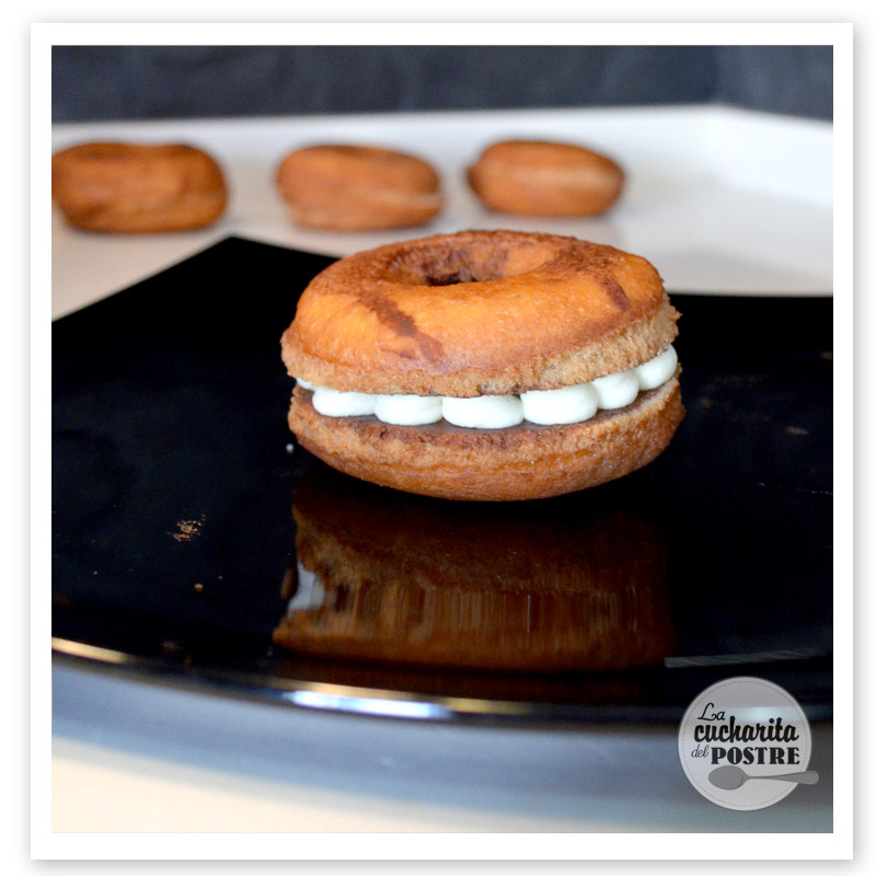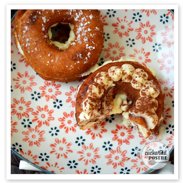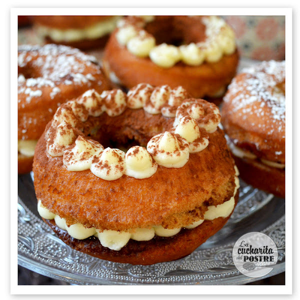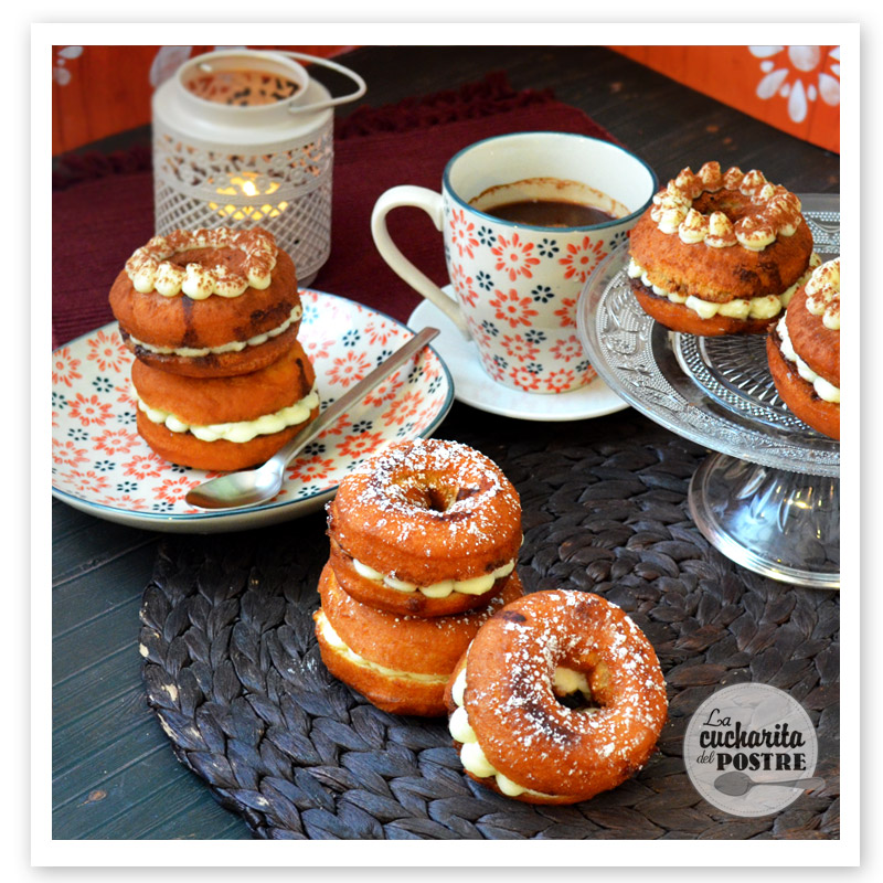 ¿Qué te parecen? ¿Te atreves a hacerlos en casa? Es de esas recetas que no son tan espectaculares como una tarta o unos cupcakes, pero que cuando les das el primer bocado se te saltan las lágrimas de lo ricos que están. El café hace que el donut quede jugoso y la crema de dentro está tan buena que en dos bocados ha desaparecido el donut.