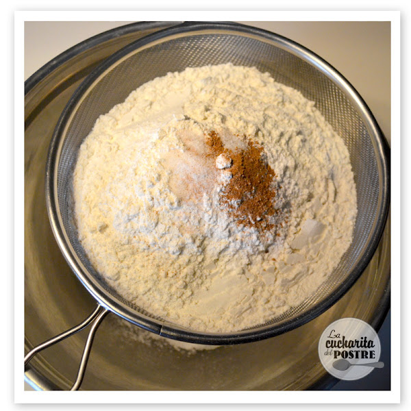 4. Por otro lado, tamiza la harina, el polvo de hornear o levadura, la nuez moscada y la sal en otro bol.