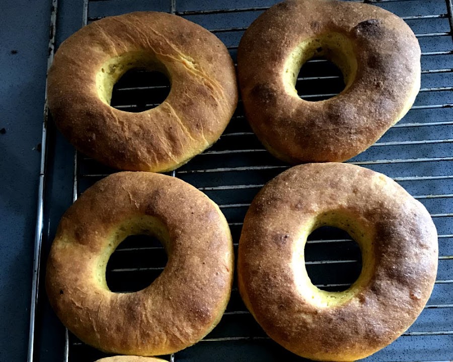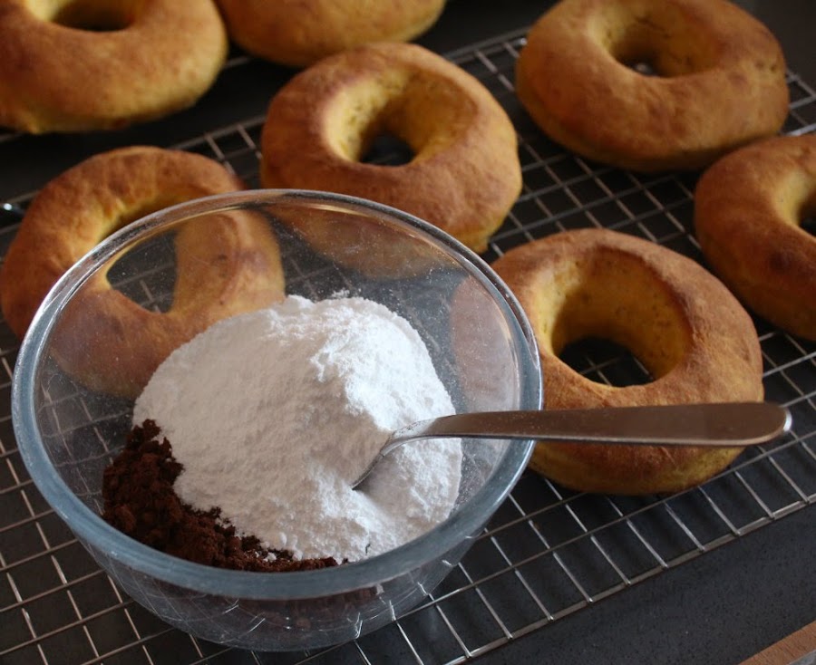 Horno, precalentado a 190º. Dejamos los donuts dentro durante 12-13 minutos, sacamos y dejamos enfriar sobre una rejilla.