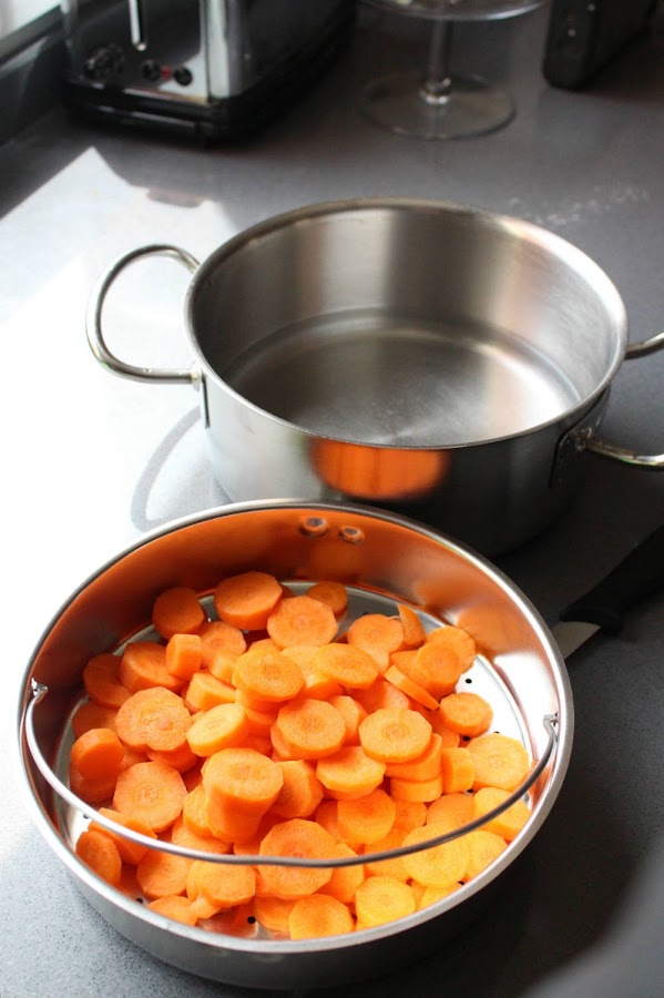 Hacemos las zanahorias, al vapor.