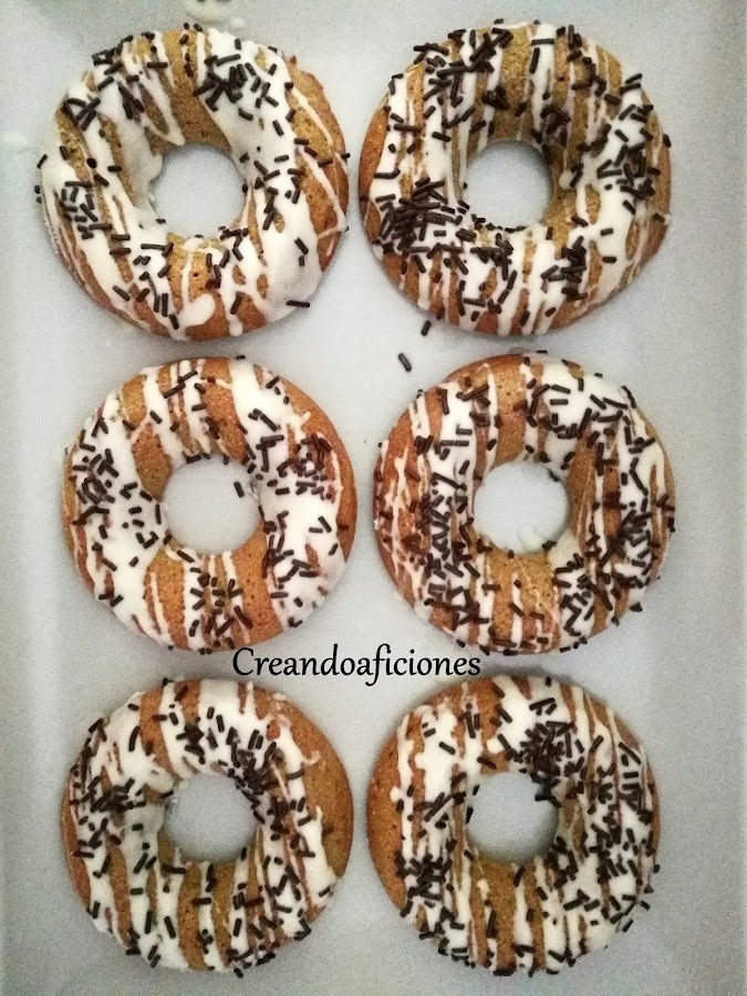 Echamos el chocolate por encima de los donuts y ponemos los fideos de chocolate.