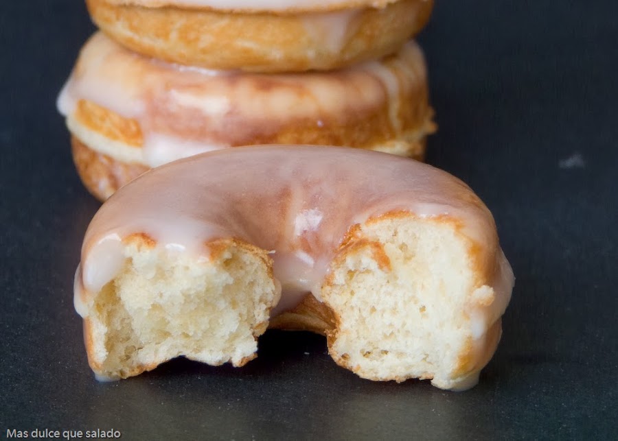 Como la masa no es muy dulce, el glaseado es imprescindible.Son unos donuts esponjosos y nada empalagosos.