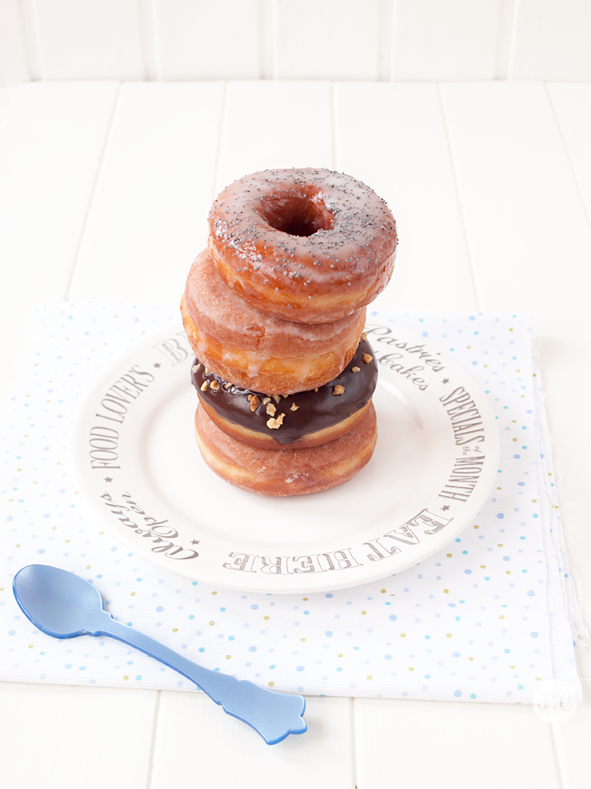 Seguí a rajatabla la receta del libro Dougnuts, de Lara Ferroni, que gané en el concurso de MaraEnGredos. No sabía por qué glaseado decantarme así que hice tres: el básico, el de toda la vida; de chocolate, no podía resistirme a incluirlo; y el de limón, porque me parecía una opción muy original. La verdad es que en el libro podemos encontrar muchísimos graseados diferentes. Os lo recomiendo si os gustan los donuts, de verdad.