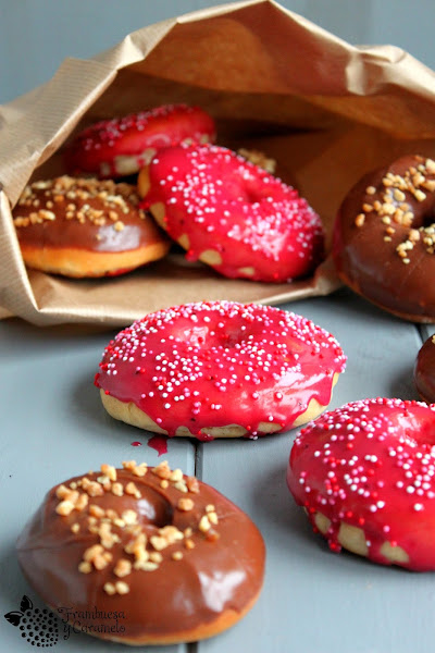 Y ahora estaréis pensando? ¡Qué cursi es Lola! (que también? jajaja), pero es que a este post tenía que titularlo así, ¿sabéis por qué? porque mi pequeña nada más ver los donuts con glaseado de frambuesa exclamó ojiplática: ¡mamá, son donuts para princesas! Así que para mí también son donuts de princesas.