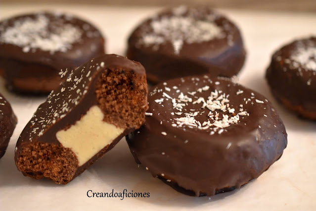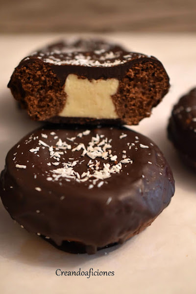 Los metemos en la nevera para que se sellen por abajo y en cuanto el chocolate este frío, podemos poner la crema de coco en los agujeros.