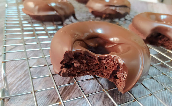 Derretimos la tableta de chocolate sin lácteos y bañamos los donuts, metemos unos minutos en la nevera para que endurezca el chocolate.