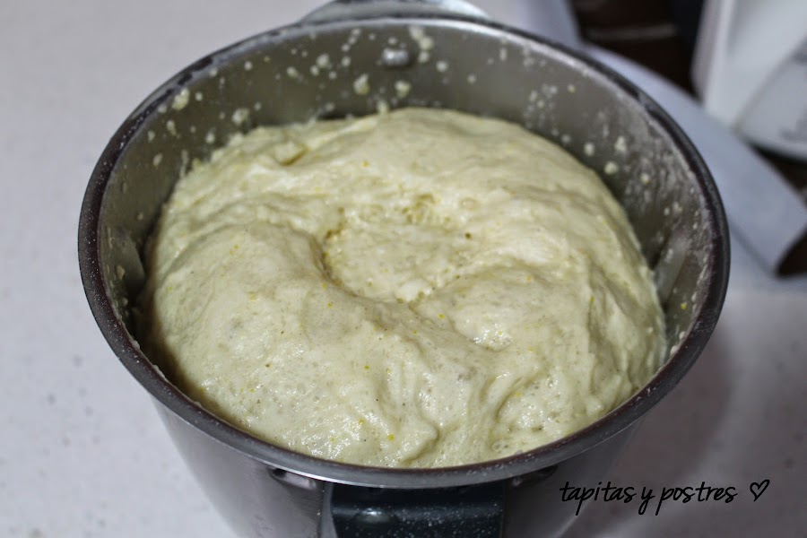 Amasamos dos minutos, y dejamos dentro del vaso abrigado para que crezca.