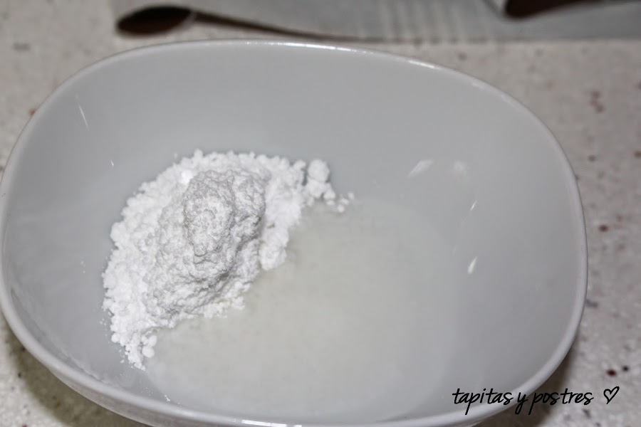 Hacemos la glasa, batiendo el agua con el azúcar glass. Nos debe quedar espesito.