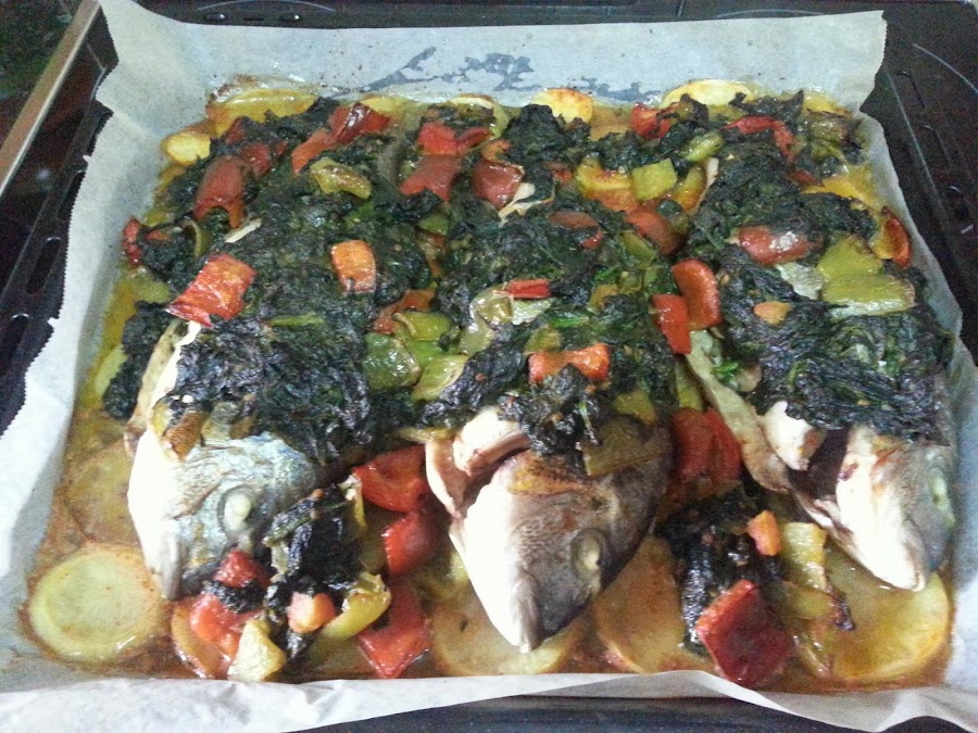 Pasado este tiempo, retiramos del fuego y repartimos sobre el pescado.