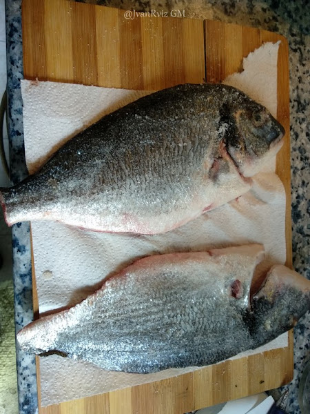 Lo primero que vamos a hacer es secar las doras con un paño o con papel de cocina. Una vez que estén lo mas secas las doradas las sazonamos y reservamos.