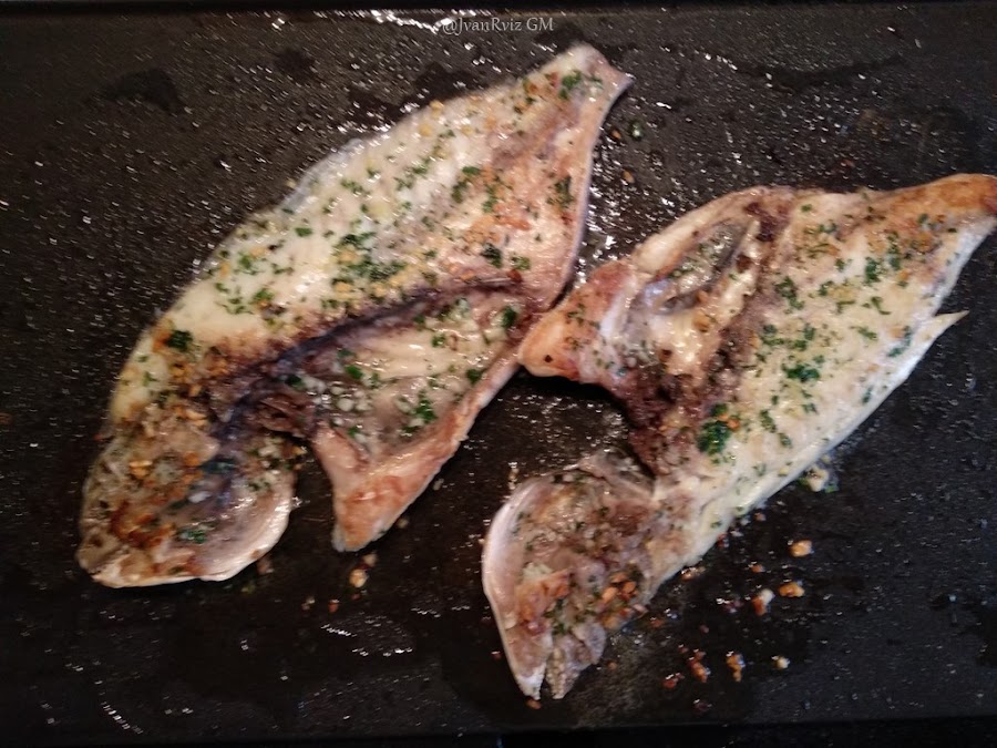 Ponemos la plancha al máximo, añadimos un poco de aceite de oliva y colocamos las doradas boca arriba.
