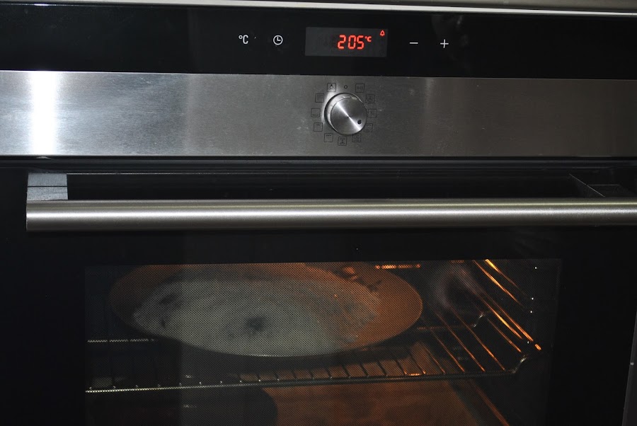 Introducimos la bandeja en la parte central del horno y horneamos. El tiempo de horneado podemos calcularlo de dos formas. Calculando 20 minutos por kilo de pescado o mirar el ojo de la dorada. Cuando tengacolorblanco nuestra dorada estará perfecta.