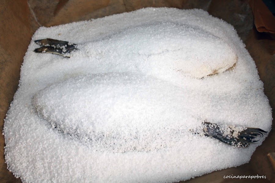 Presionamos con las manos la sal para que esta quede pegada al pescado.
