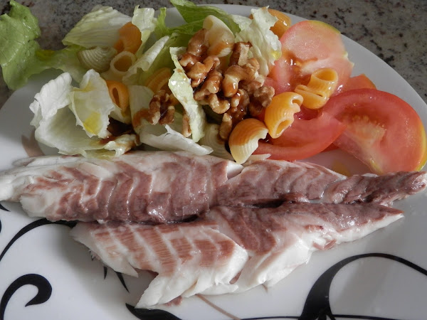 Servimos con una ensalada con pasta para completar el plato.