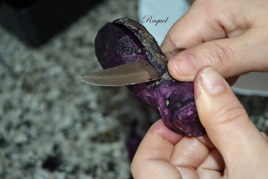 Así que mi receta va por ti.Ya hace un tiempo me anime a probar esta variedad de patata la Vitelotte, quizás el nombre no os dice nada, pero si os digo que es la patata morada o violeta, esa ya sabéis cual es verdad?
