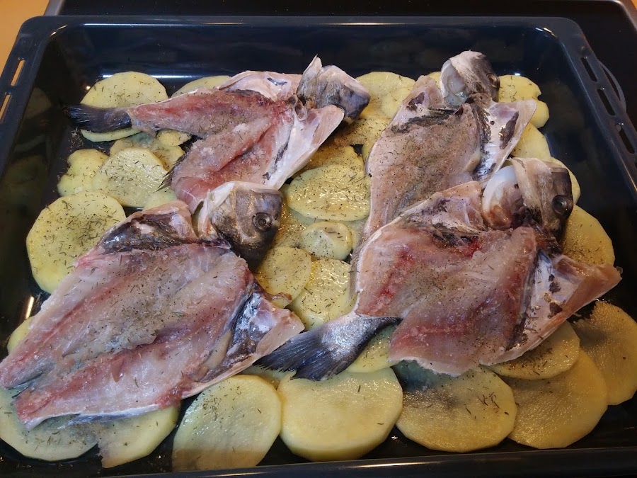 Vamos a pelar las patatas y a cortarlas en rodajas, que no sean gruesas. Las colocamos en la bandeja.