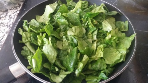Calienta de 1 a 2 minutos hasta que las hojas de espinaca se hayan derrumbado levemente.