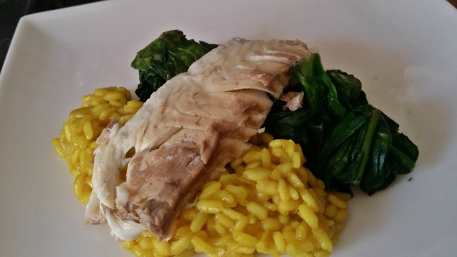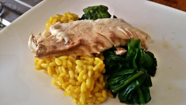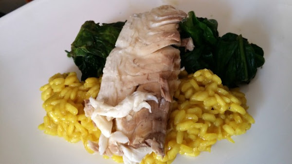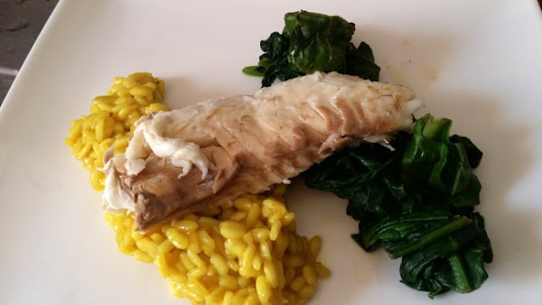 Aun teniendo las recetas traducidas, no me terminaba de llegar ninguna de ellas. Al final me decanté por una receta muy sencilla pero con tres elaboraciones distintas. Tenía ganas de hacer la dorada a la sal y el risotto es un básico en mi casa. Por lo tanto por esta receta me he decantado haciendo mi reinterpretación.