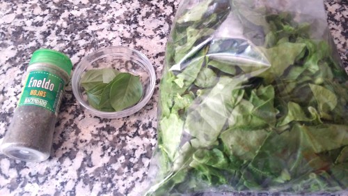 5. Para la espinaca, lávalas y sacúdelas, quitando los tallos gruesos. Lava las hierbas, agita y pica.