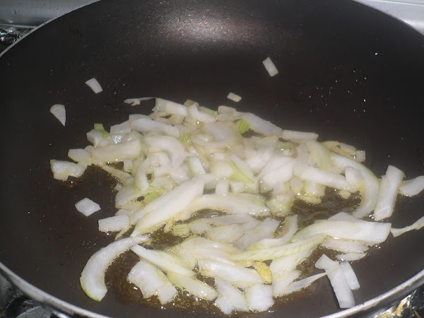 Pondremos en una sartén 2 o 3 cucharadas de aceite y pondremos la cebolla picada a pochar.