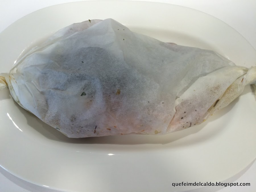 En primer lugar preparamos el material para envolver las doradas, esta vez he querido cambiar y no lo he hecho con papel de aluminio sino que he cogido dos hojas de papel sulfurizado y las he envuelto en ellas.