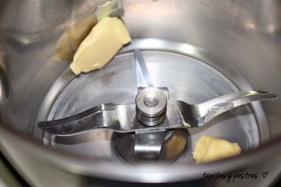 Ponemos la mantequilla en el vaso de la thermomix y la derretimos.