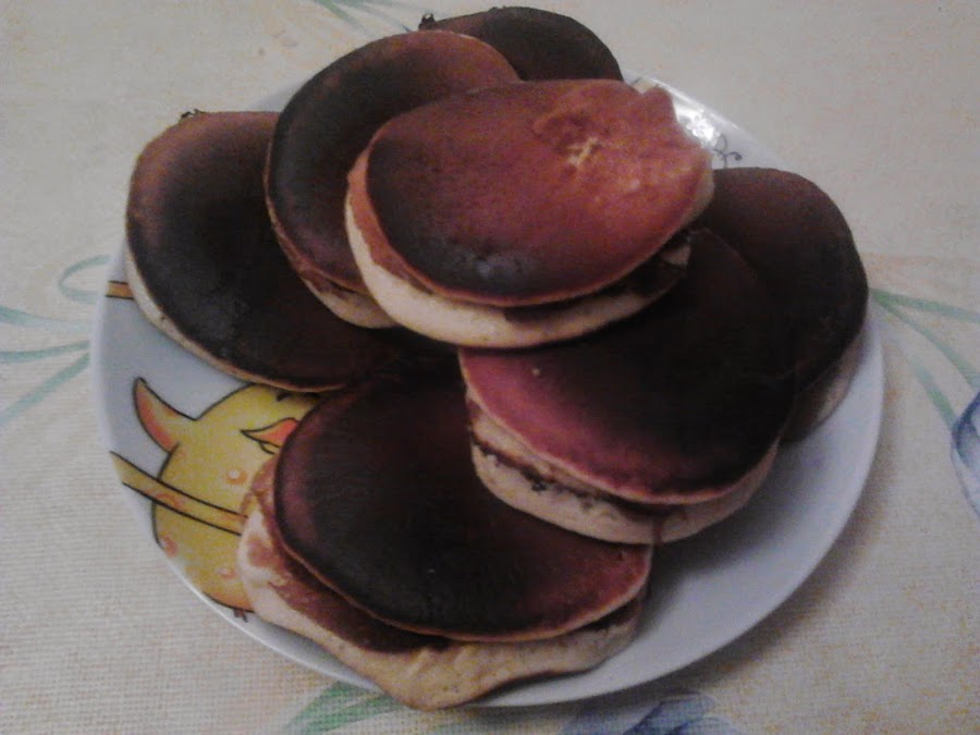 Los Dorayakis son un dulce japones que se han hecho famosos por los dibujos de Doraemon. Me decidi a hacerlos porque mi hijo me los pedia para merendar,asi fui buscando la receta y encontre varias y esta es la que mas me gusto. No tiene gran secreto la masa, e incluso se pueden comparar con las tortitas americanas. Una cosa que es caracteristica de los Dorayakis es el relleno original que es una pasta de judia roja( azuki) llamada anko.