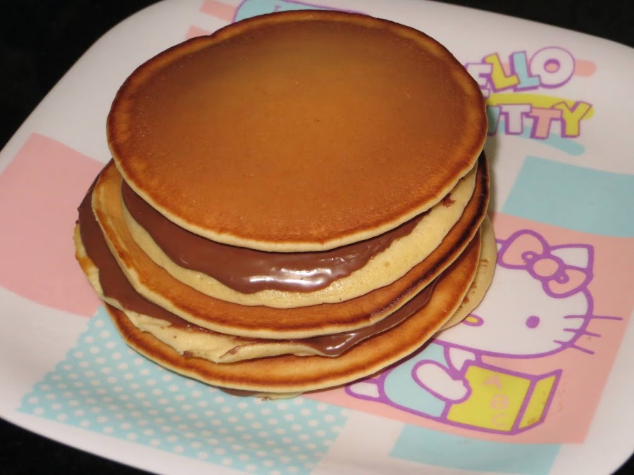 Luego cogemos dos tortitas y entremedias le untamos una capa generosa de crema de cacao y ya están listos para comer.