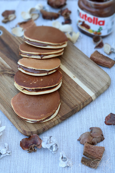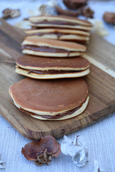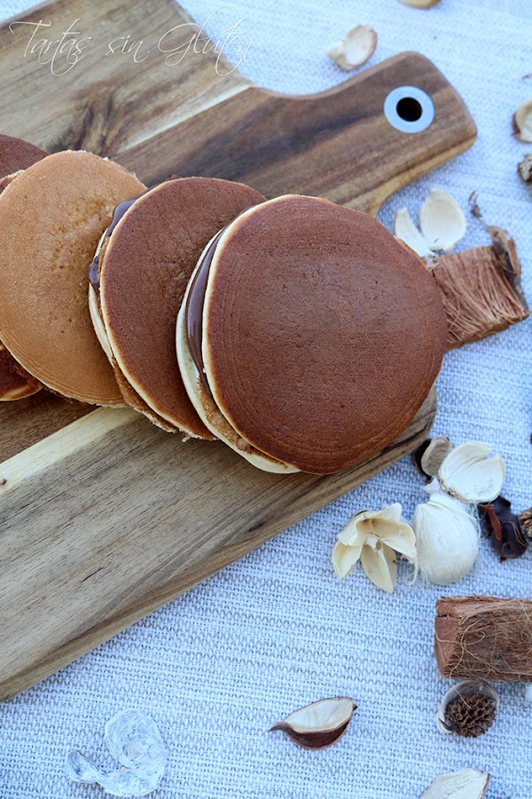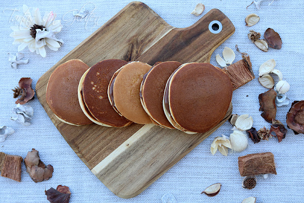 Preparamos una sartén antiadherente, y pincelamos ligeramente con mantequilla. Usando un cacito o cucharón (siempre el mismo, para que nos salgan todos los dorayakis iguales) vertemos la crema en la sartén. Dejamos que la tortita se haga durante medio minuto hasta que veamos que salen burbujitas con la ayuda de una espátula le damos la vuelta y la dejamos cocinar otro medio minuto.