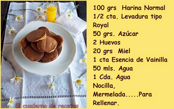 Pues ala, hoy en homenaje a estos dibujos tan queridos por mis hijos {cuando tuvieron, edad claro, ahora ya van por otros derroteros} y tantas horas que tuve que soportarlos, hago estos DORAYAKIS, que estoy segura os van a encantar si los hacéis y que en compensación por los malos ratos, también me tomaré unos cuantos.