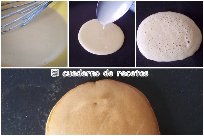 Ya sólo queda calentar una sartén o plancha y verter la masa a cucharadas soperas, procurando que quede en forma circular. Mantendremos el fuego medio - bajo.