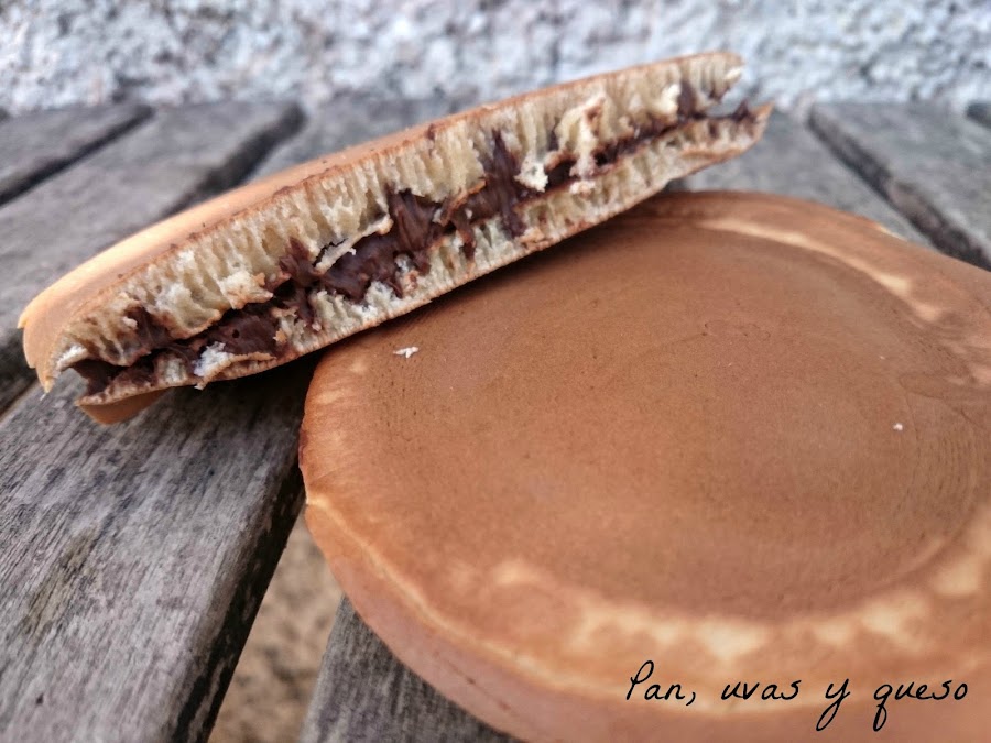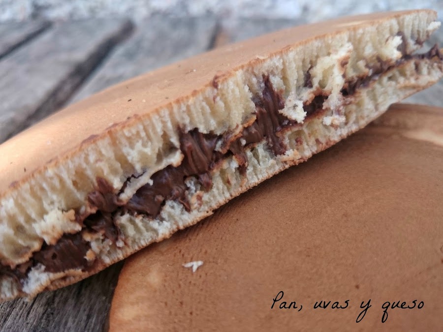 Mis dorayakis van rellenos de crema de chocolate, pero en la receta tradicional van rellenos de anko (una especie de judía dulce) y chocolate.