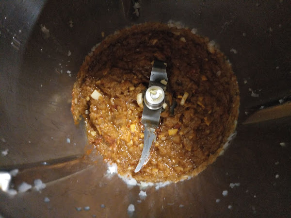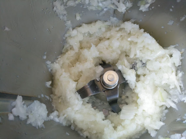 Triturar la cebolla en un procesador de comida o con la Thermomix.