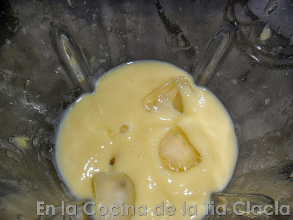 6. Ahora agregue el hielo pero no licue mucho, para que queden pedazos.
