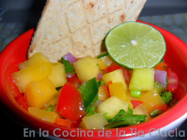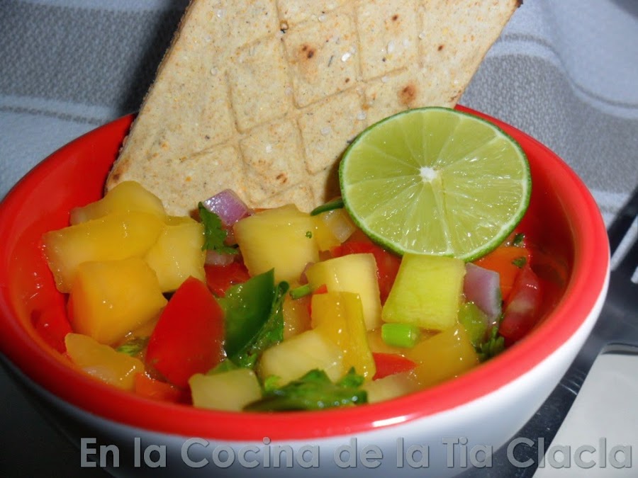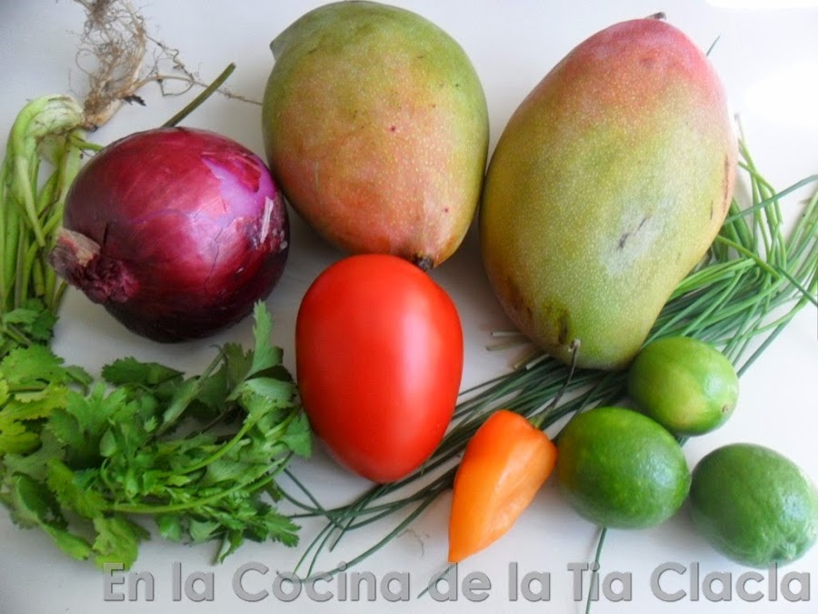 · 3 mangos grandes verdes, o lo mas verdes posibles.