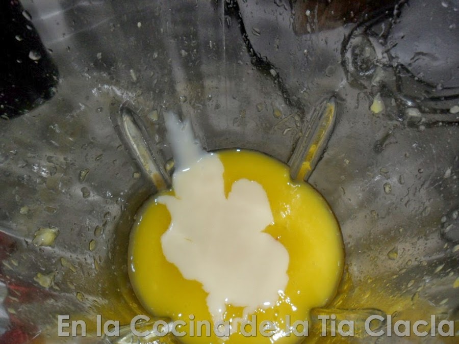 5. Con la licuadora en movimiento, agregue la leche condensada y el tequila.