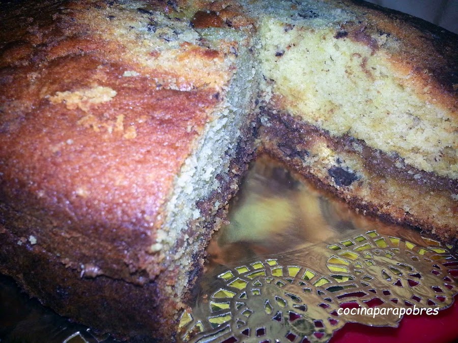 Tarta pez con bizcocho con pepitas de chocolates