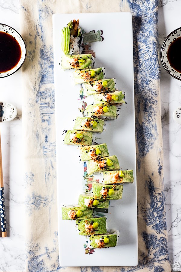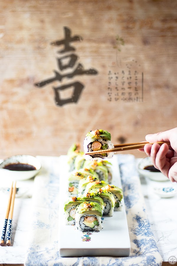 Como buen amante del sushi que soy, llevaba mucho tiempo sin publicar ninguna receta de este tipo de comida japonesa. La última, si no me equivoco, fueron los Sushi Donuts, que además preparé en el programa de Canal Cocina. Por eso, aprovechando el reto de #AguacatePasión, he decidido preparar estos deliciosos Dragon Rolls que todo amante de sushi debe saber preparar, porque... el sushi en casa está igual o más bueno que el que encontraréis en restaurantes y superficies comerciales.
