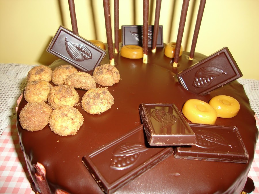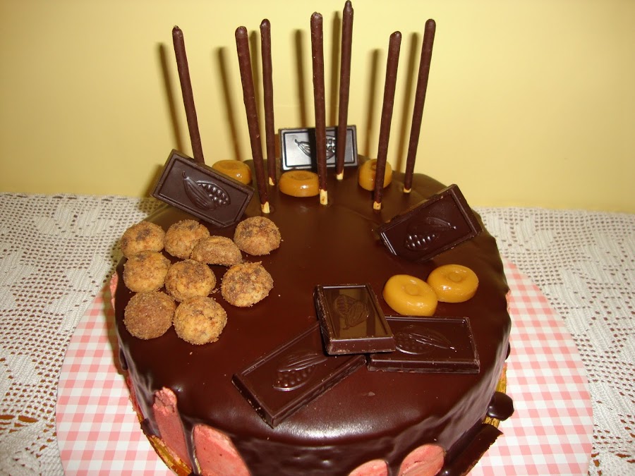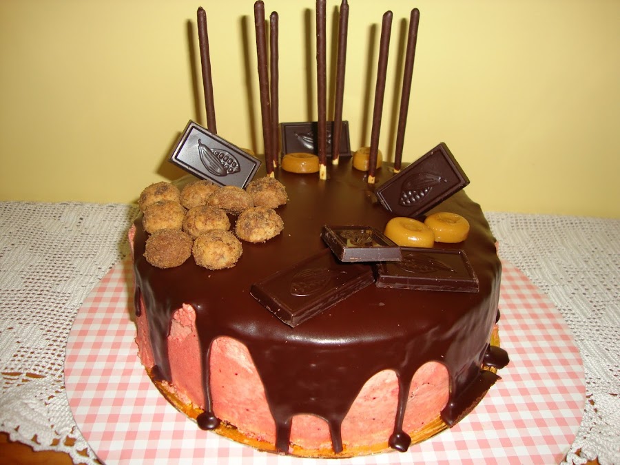 A todo el mundo le encantó la tarta y es que la mezcla esa del chocolate con la fresa un poco ácida es deliciosa. Y mi hija mejoró luego mucho la decoración añadiendo unos sprikles en forma de estrellas de color blanco y rosa.
