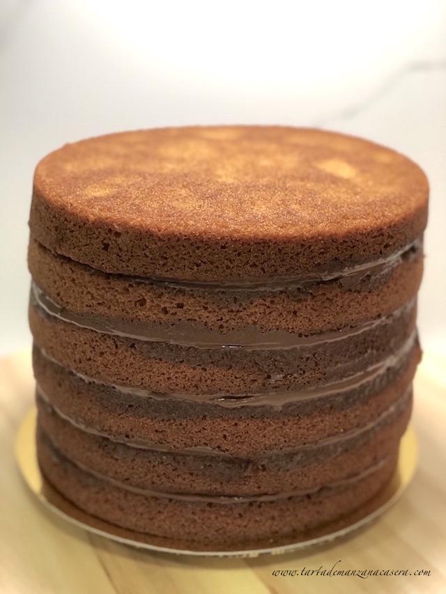 He duplicado la receta y repartido en 6 moldes bajos tipo Layer Cake de 18 cm de diámetro. La cumpleañera la quería muuuuyyyy alta.