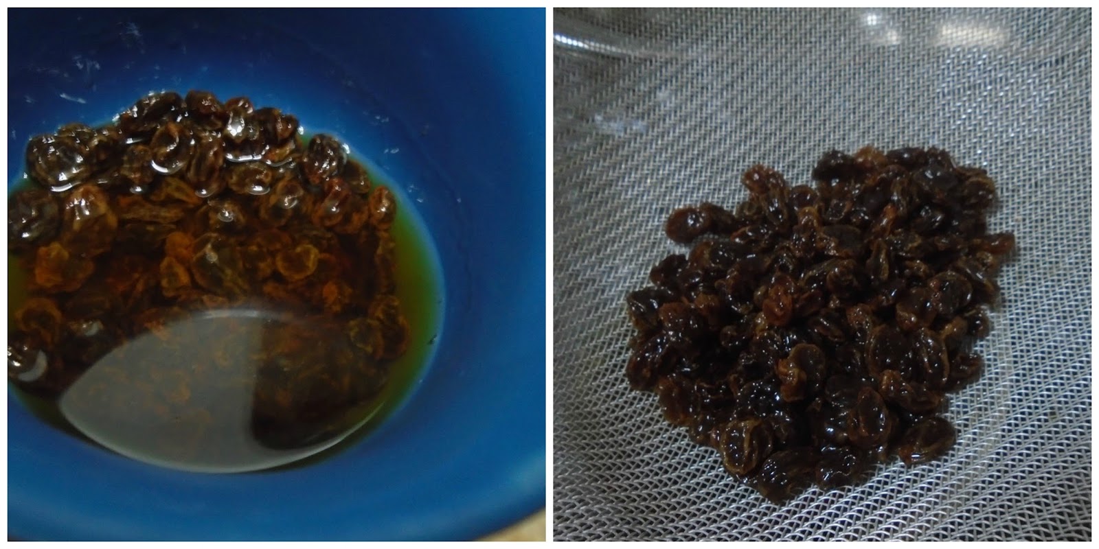 Retiramos las varillas eléctricas y añadimos las pasas que teníamos reservadas. Ya tenemos lista nuestra mezcla.