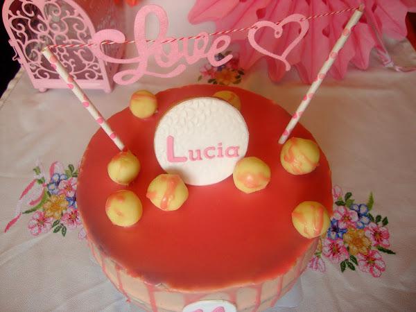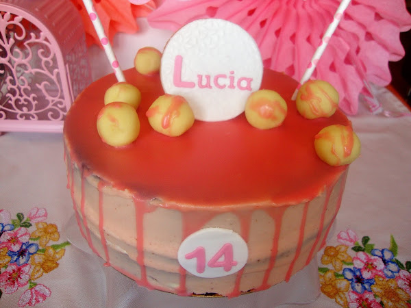 Esta cubierta por buttercream de fresa y bañada en ganache de chocolate blanco (teñido de rosa).