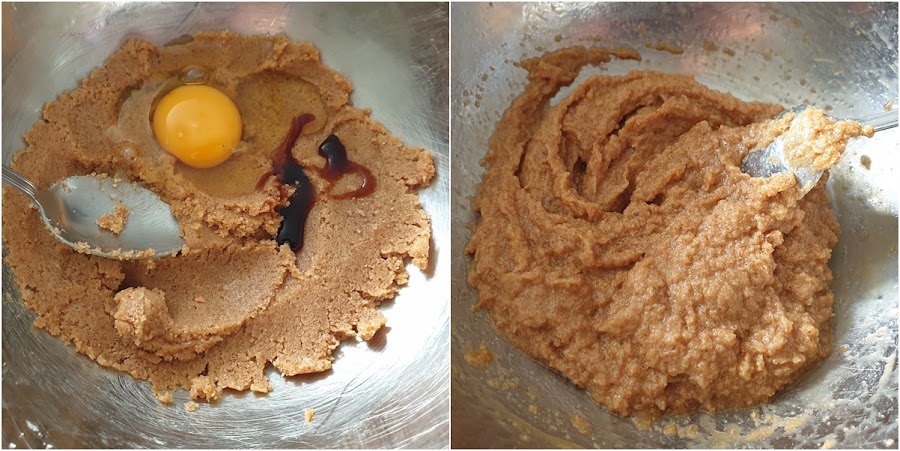 2. - Le añadimos el huevo y la vainilla y volvemos a mezclar bien.