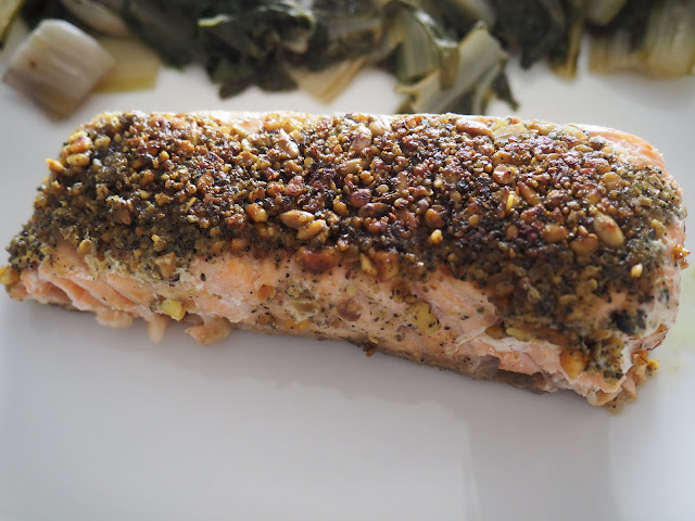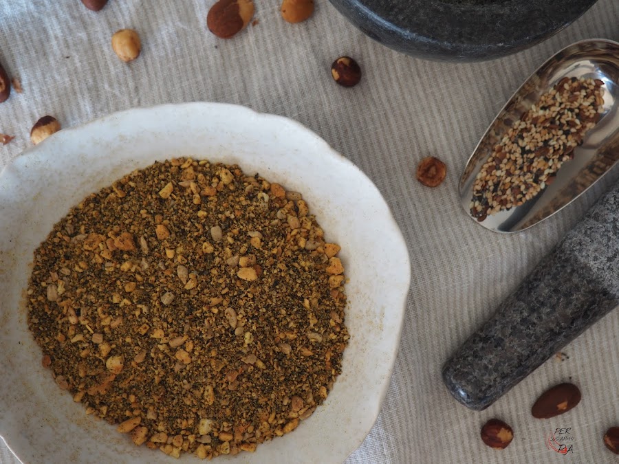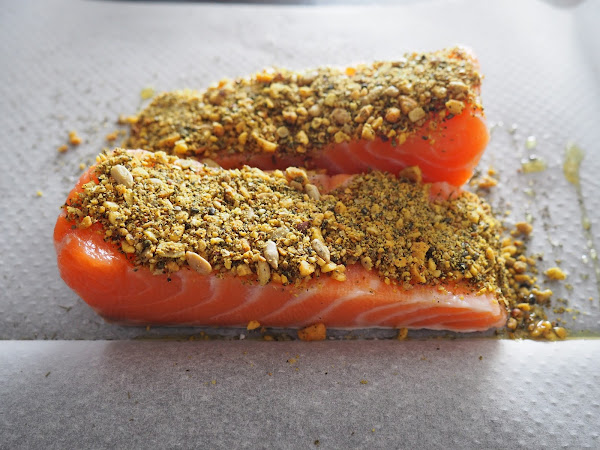 Uno de los ejemplos de utilización que os comentábamos al inicio: una capa de Dukkah para crear una crujiente y sabrosa cobertura en este salmón al papillote.
