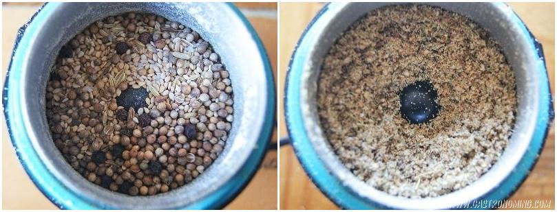 3. Mientras se tuesta nuestra primera mezcla, añadimos el resto de ingredientes, menos la sal, al molinillo y trituramos más que la mezcla anterior, pero tampoco la reduzcas a polvo del todo, recuerda que esta es una mezcla con textura.