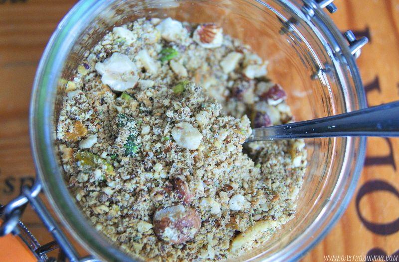 6. Guardamos en un envase preferiblemente hermético y servimos cuando quieras. Perdón, que yo me voy a untar pan con aceite y Dukkah.