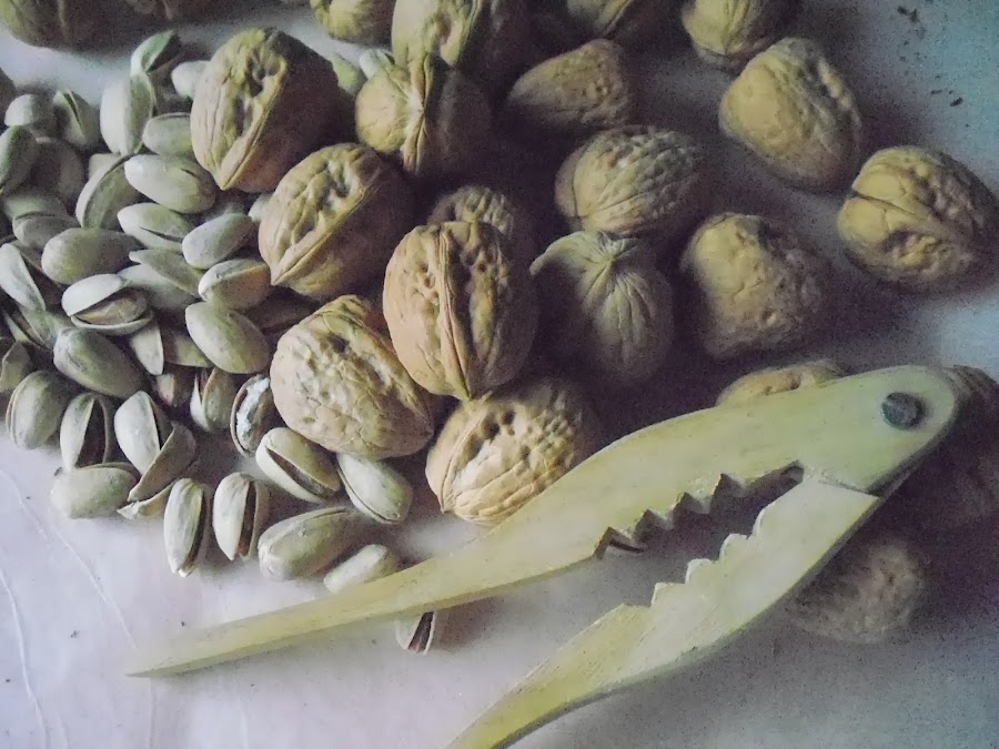 En este caso lo que hago es: primero trocear las galletas y a continuación troceo los frutos secos. En la receta original utilizaba nueces pacanas, pistachos y arándanos secos, yo utilicé lo que tenía en casa, nueces y pistachos.
