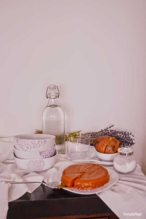 Mi intención era preparar algo parecido al dulce que se prepara en Andalucía con los membrillo (carne membrillo). Resulta que mi idea no era nueva. Este dulce de batata es una postre típico de Argentina. Es como una mermelada espesa, de color naranja oscuro, se le puede añadir chocolate y, en ocasiones, incluso se le puede añadir otras frutas. Visitando varias web he visto que hay quien lo prepara con agar-agar, yo lo he preparado con hojas de gelatina.