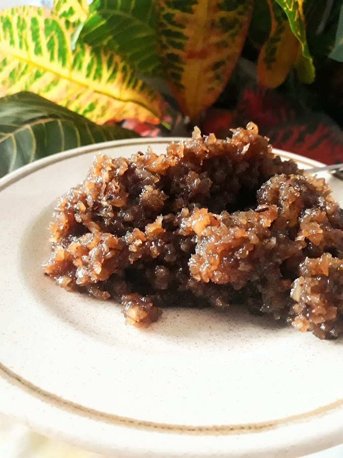 y la astilla de canela dejar hervir,agregamos el coco rallado cocinar y cuidar hasta que al pasar la cuchara se separe la preparación,en calor medio,ya listo retirar la astilla de canela, servir tibio o a temperatura ambiente.