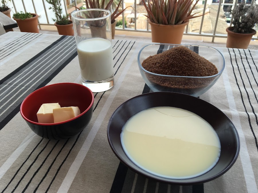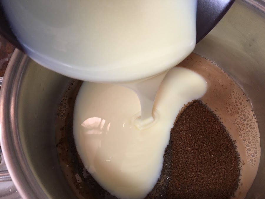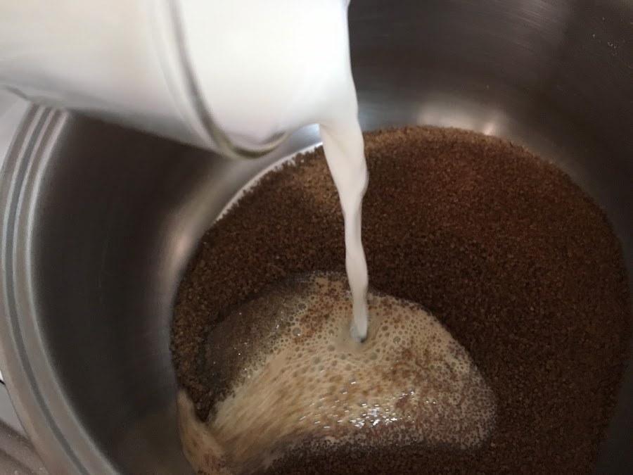 Primero ponemos el azúcar moreno y añadimos la leche.
